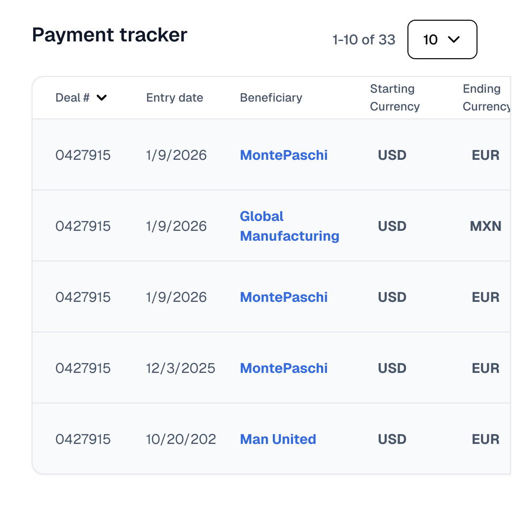 Initiate, price, send and track payments - directly within the workflows where transactions originate.
