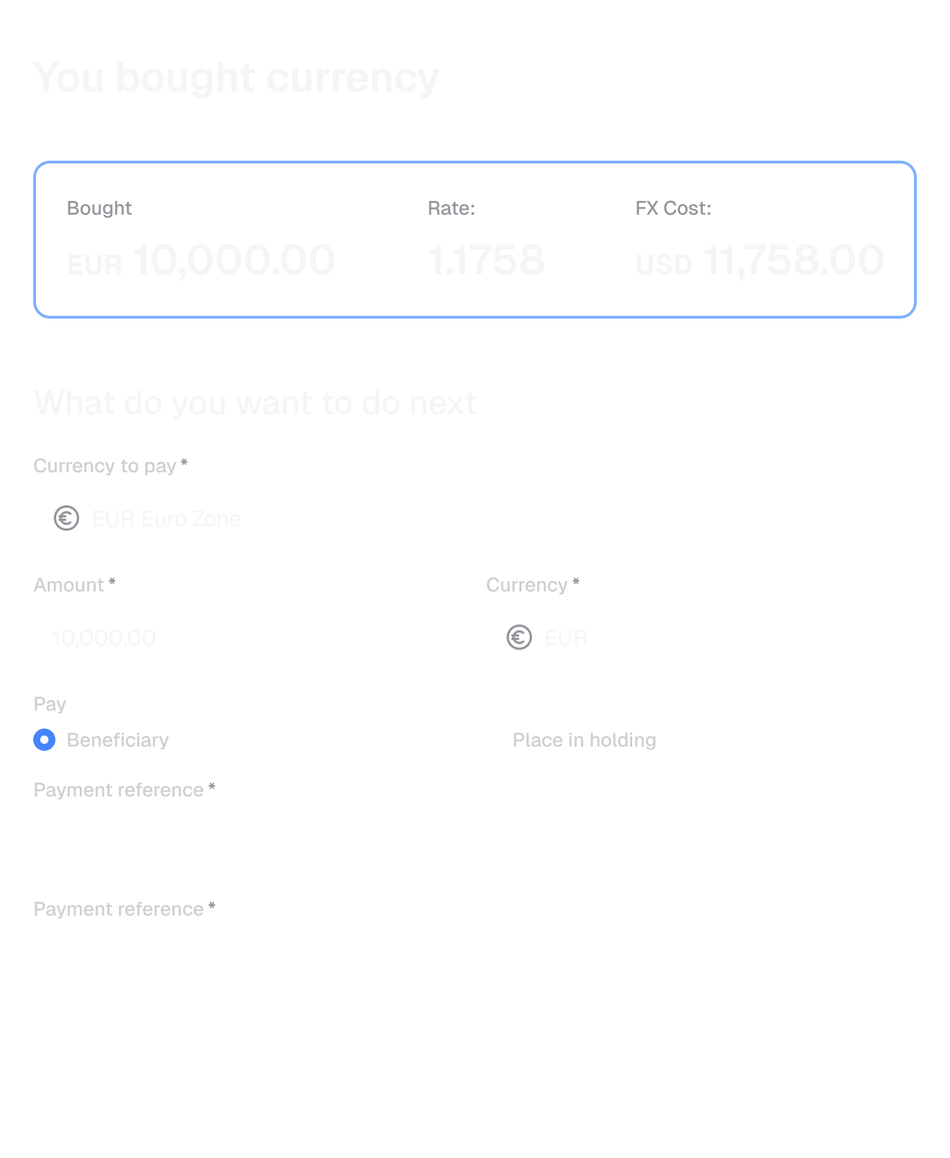 Hold, convert and move funds across 130+ currencies, including EUR, CNY, JPY, and more - all from one account structure